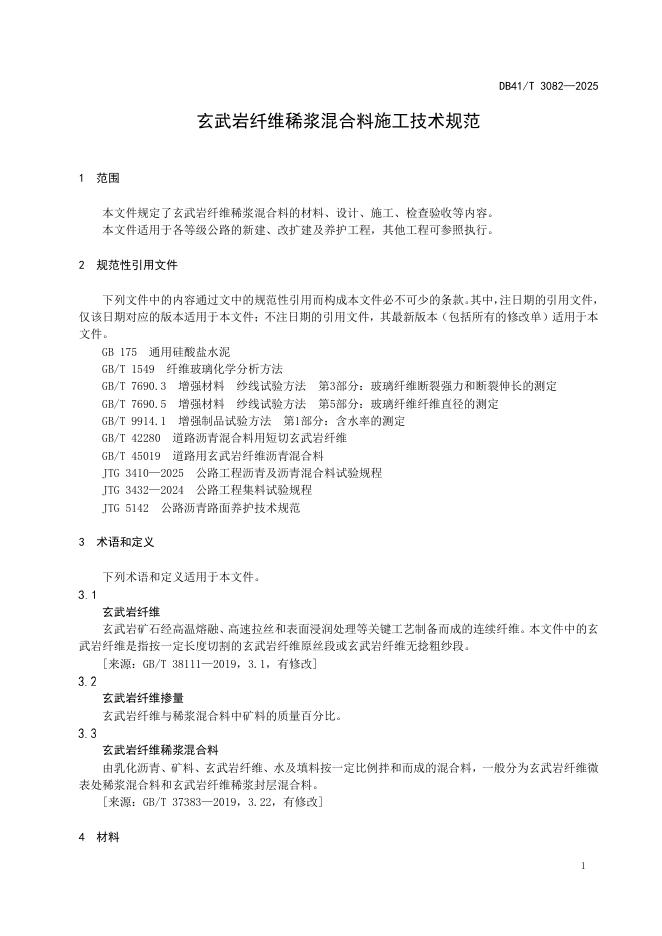 DB41/T 3082-2025 玄武岩纤维稀浆混合料施工技术规范