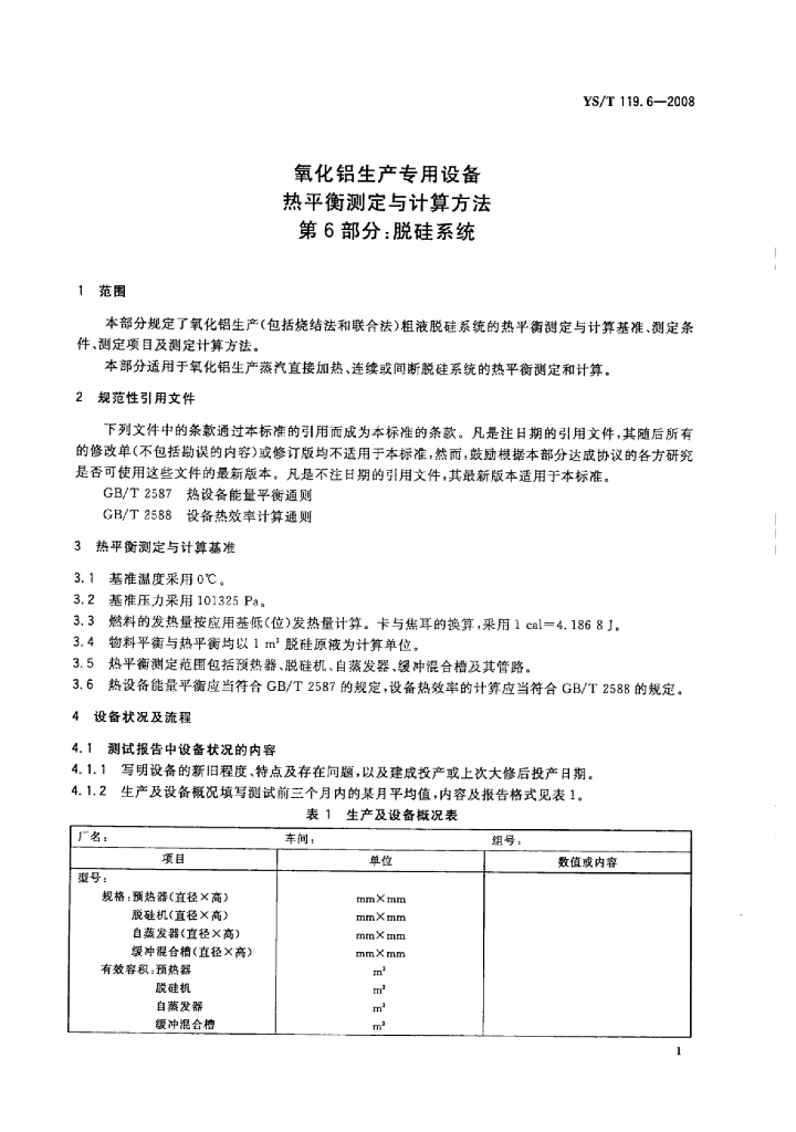 YS/T 119.6-2008 氧化铝生产专用设备热平衡测定与计算方法 第6部分:脱硅系统