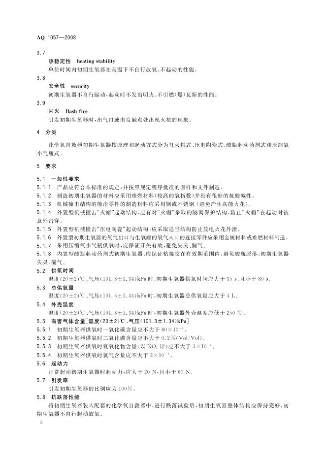 AQ/T 1057-2008 化学氧自救器初期生氧器
