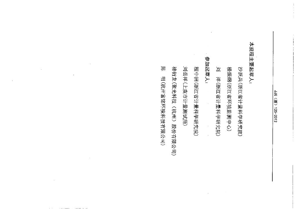 沙跃兵(浙江省计量科学研究院)、楼振纲(浙江省环境监测中心)、刘洋(浙江省计量科学研究院)、程中洲(浙江省计量科学研究院)、刘岳祥(上虞市计量测试所)、褚衍龙(聚光科技(杭州)股份有限公司)、陈明(杭州富铭环境科技有限公司)