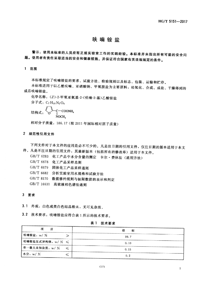 HG/T 5151-2017 呋喃铵盐