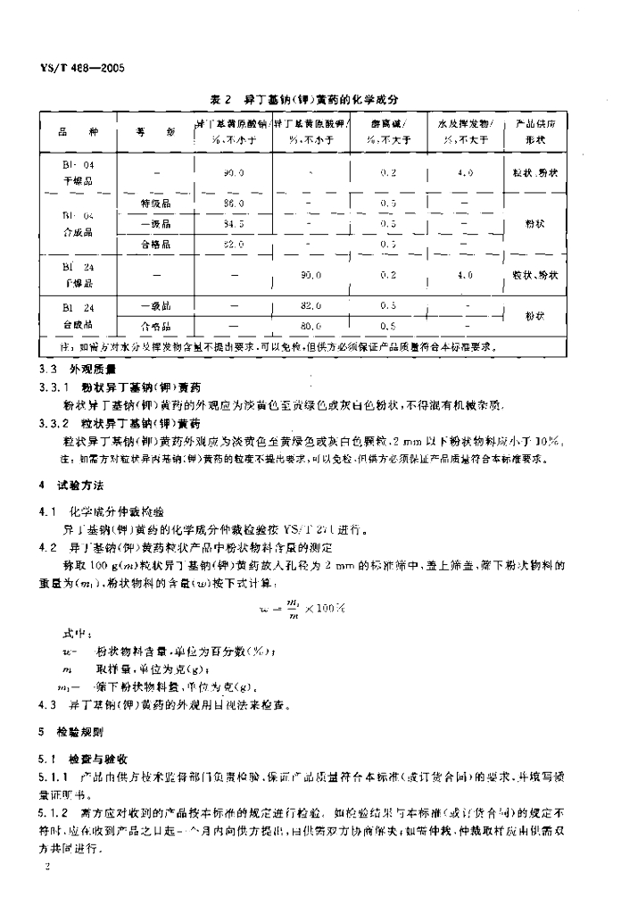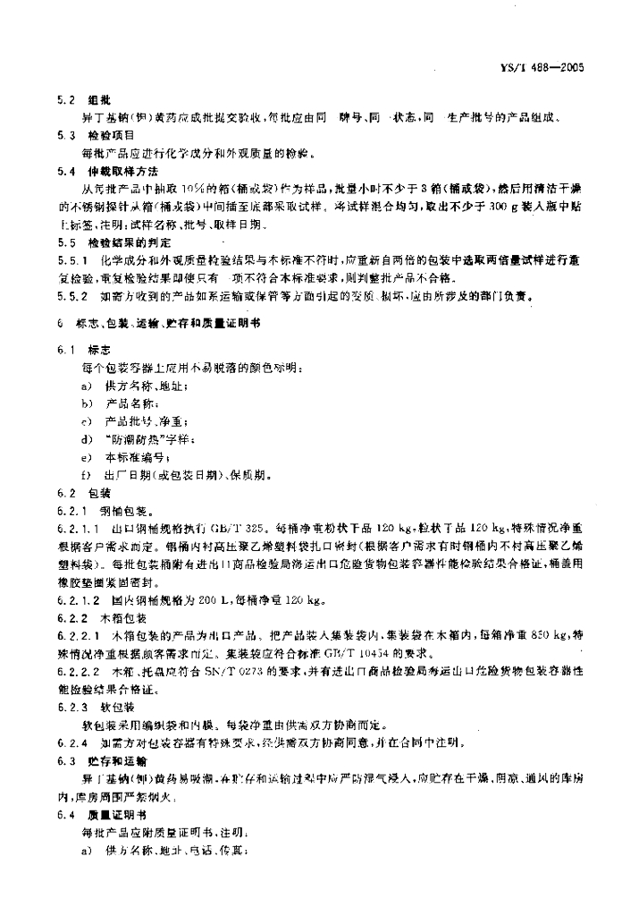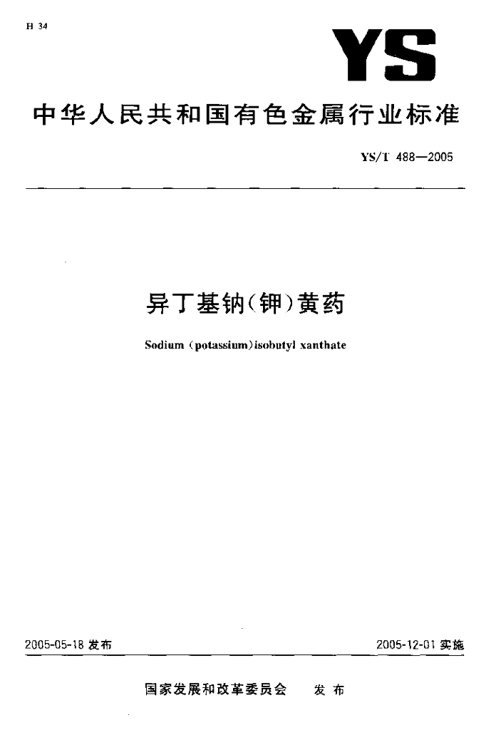 YS/T 488-2005 异丁基钠(钾)黄药