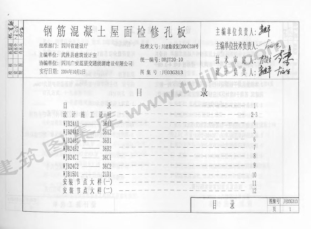 川03G313 钢筋混凝土屋面检修孔板图集