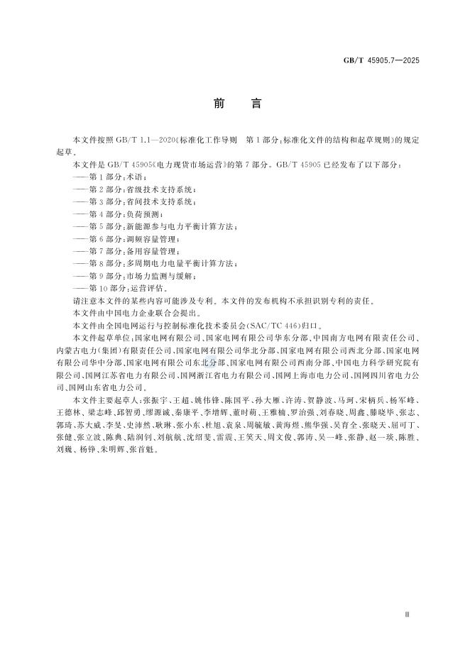 GB/T 45905.7-2025 电力现货市场运营 第7部分:备用容量管理