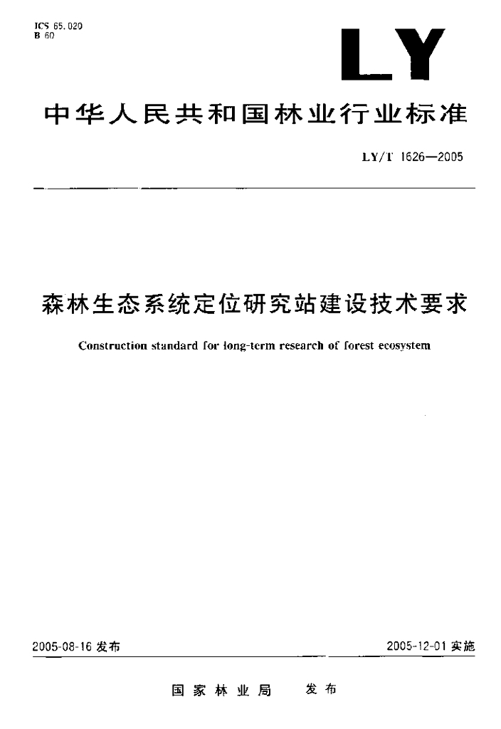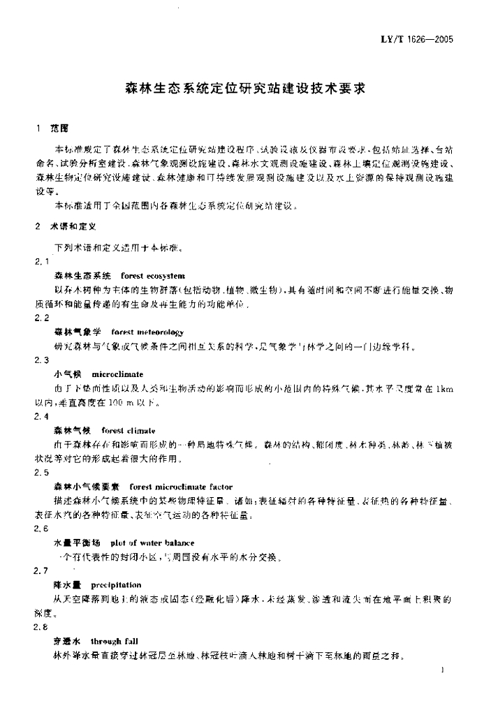 LY/T 1626-2005 森林生态系统定位研究站建设技术要求