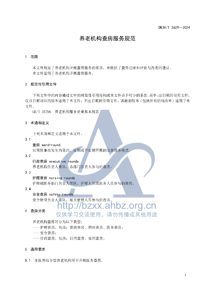 DB34/T 2629-2024 养老机构查房服务规范