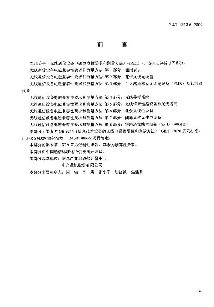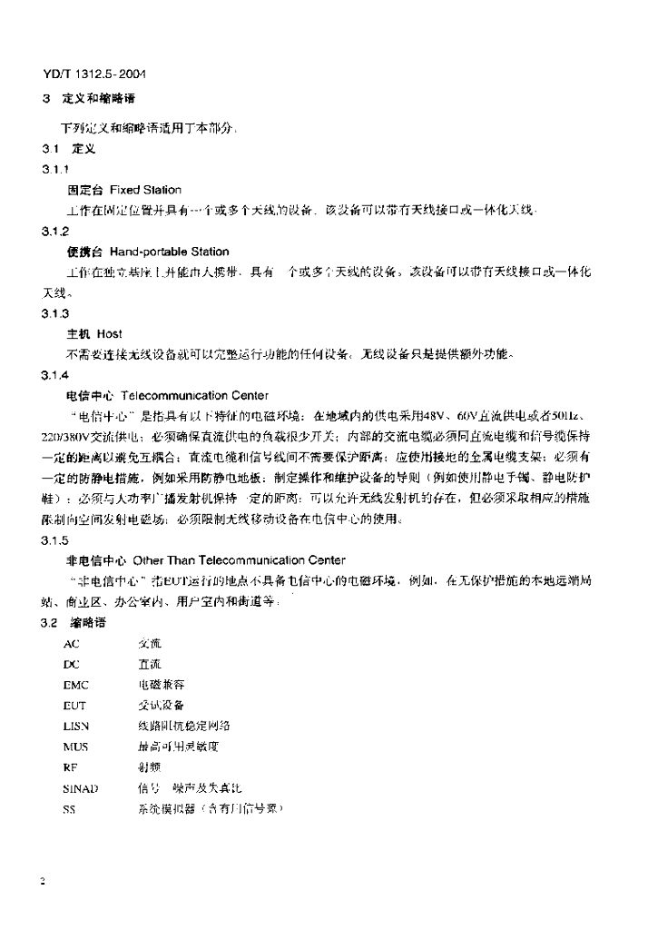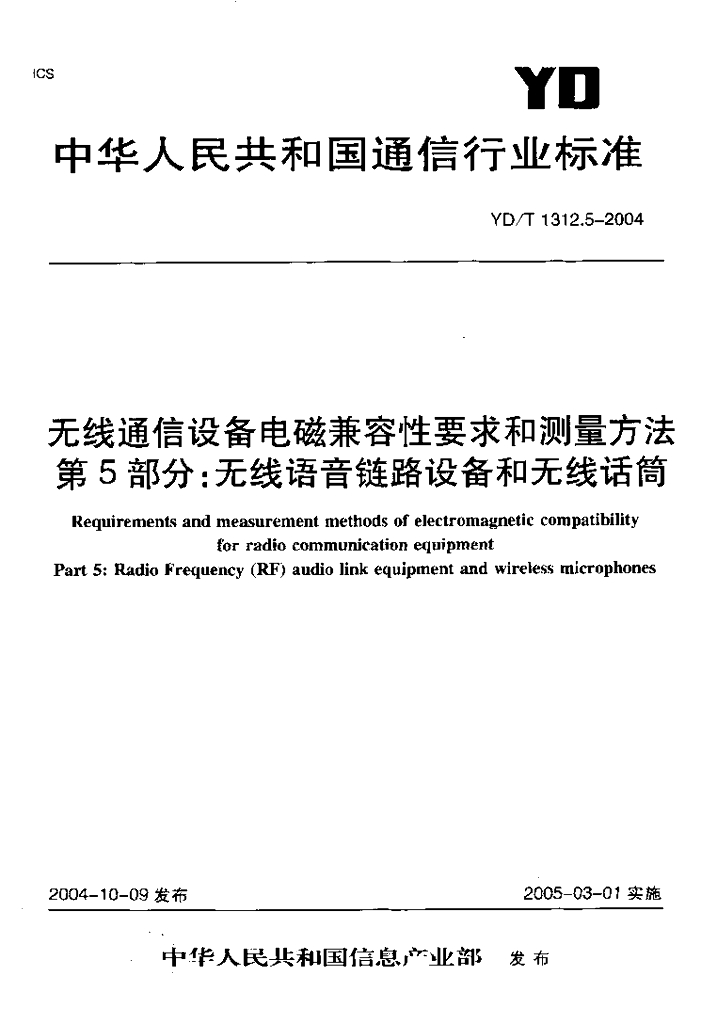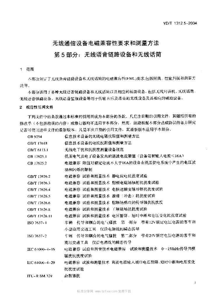 YD/T 1312.5-2004 无线通信设备电磁兼容性要求和测量方法 第5部分:无线语音链路设备和无线话筒