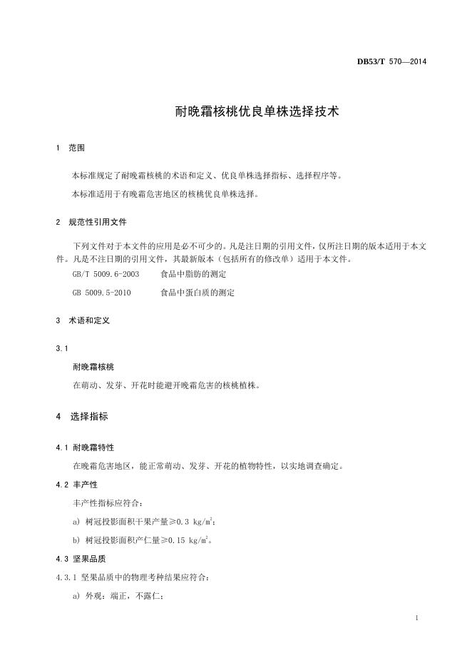 DB53/T 570-2014 耐晚霜核桃优良单株选择技术