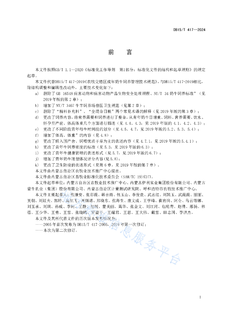 内蒙古自治区农牧业技术推广中心、内蒙古伊利实业集团股份有限公司、内蒙古蒙牛乳业(集团)股份有限公司、内蒙古自治区计量测试研究院、呼和浩特市农牧技术推广中心