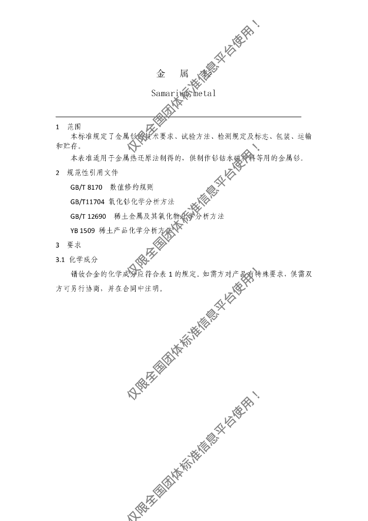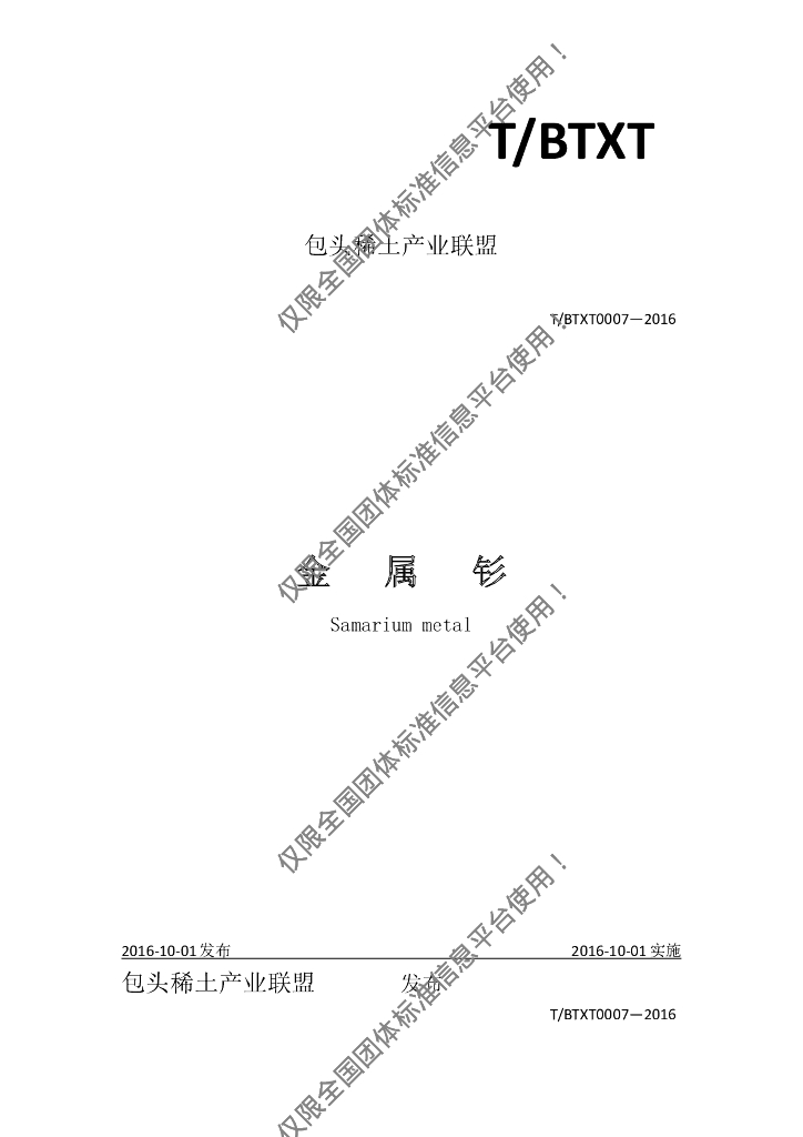 T/BTXT 0007-2016 金属钐