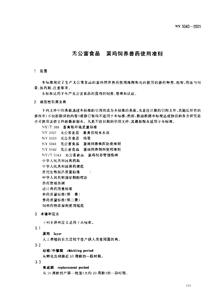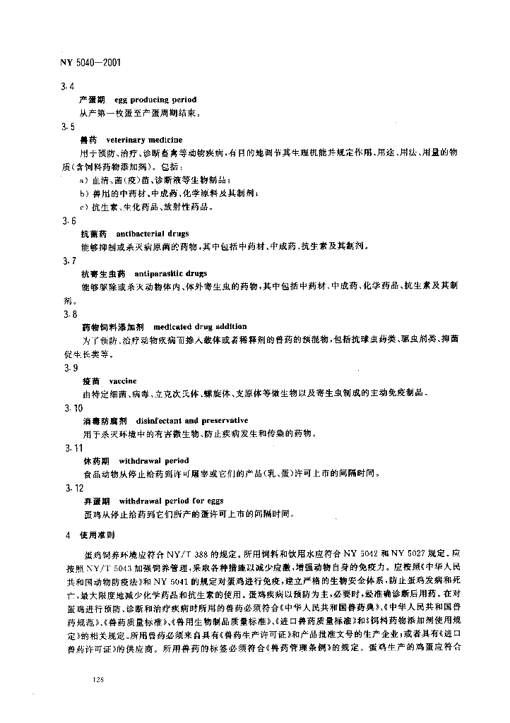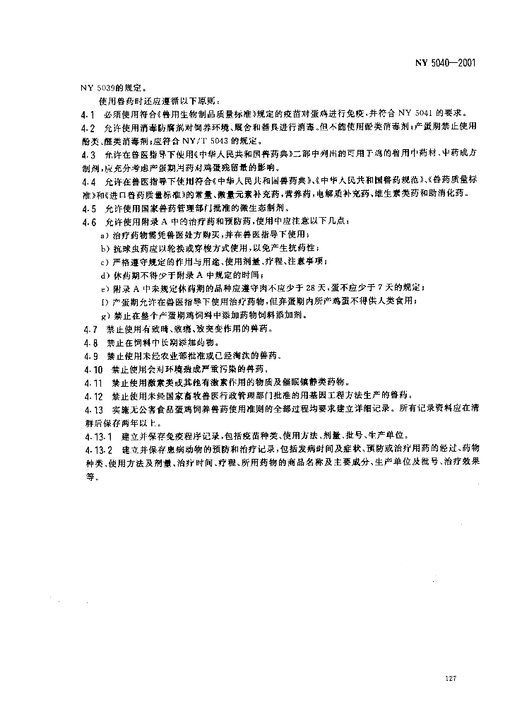 NY 5040-2001 无公害食品 蛋鸡饲养兽药使用准则