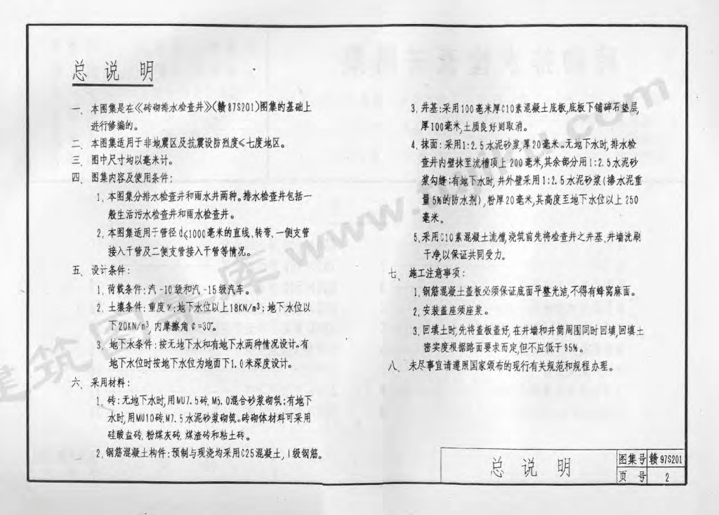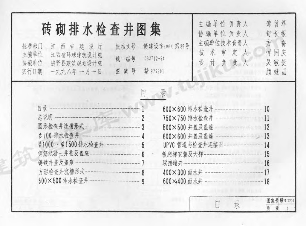 赣97S201 砖砌排水检查井图集