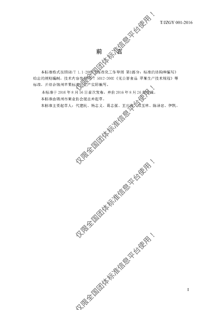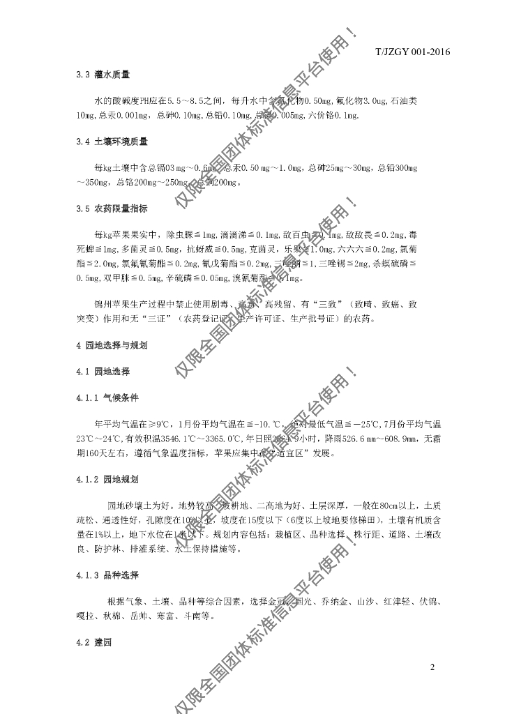 T/JZGY 001-2016 锦州苹果生产技术规程