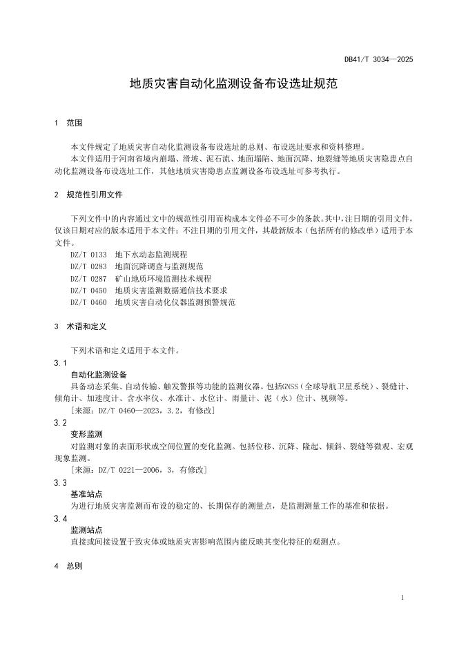DB41/T 3034-2025 地质灾害自动化监测设备布设选址规范