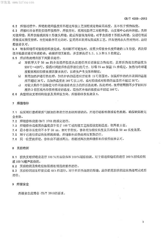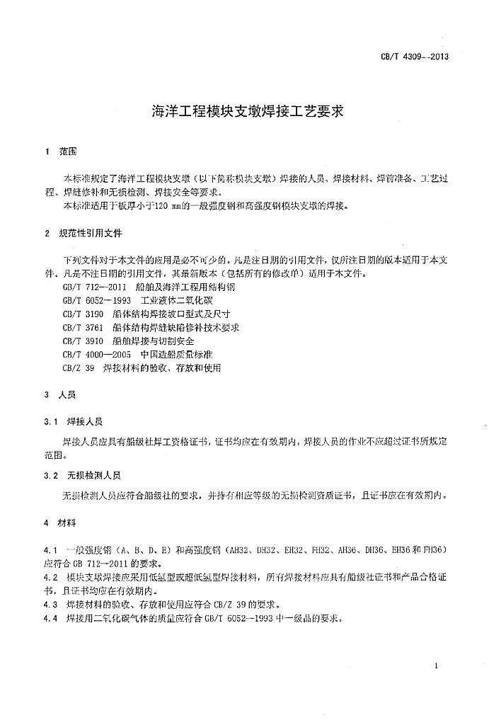 CB/T 4309-2013 海洋工程模块支墩焊接工艺要求