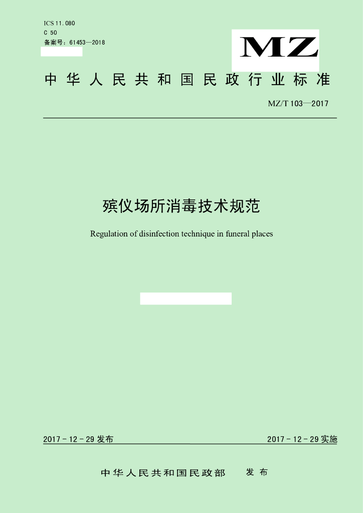 MZ/T 103-2017 殡仪场所消毒技术规范