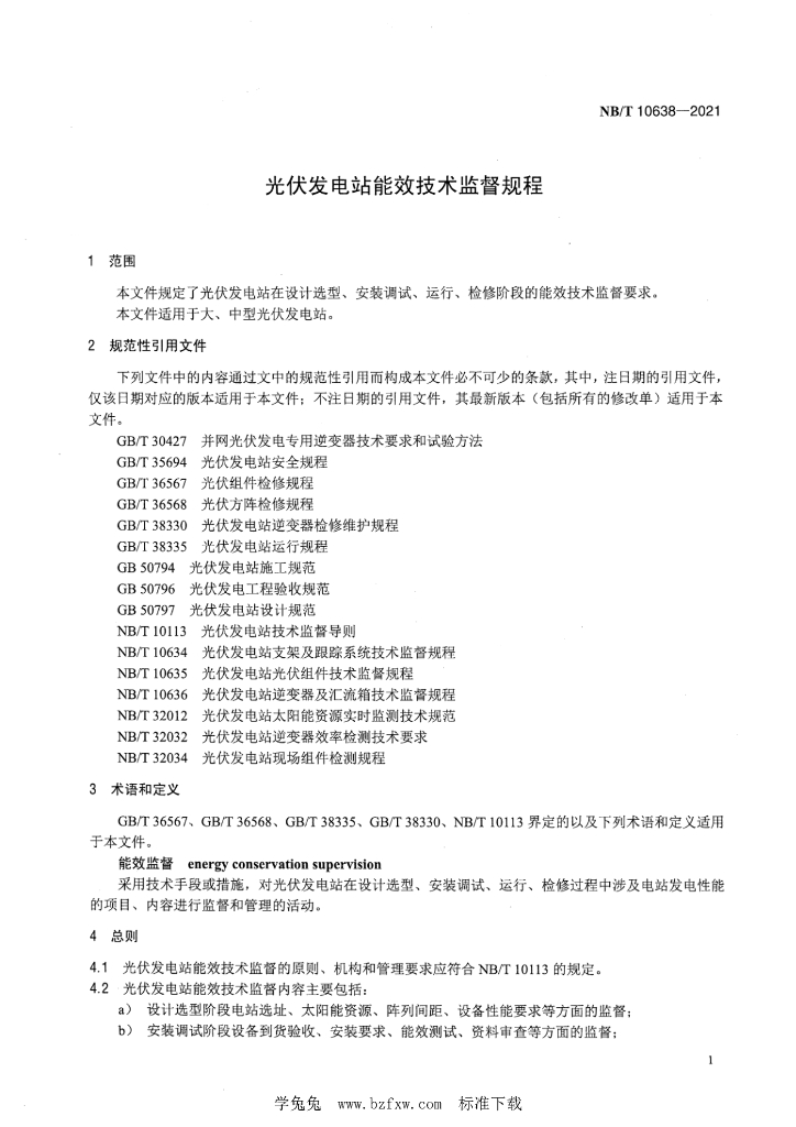 NB/T 10638-2021 光伏发电站能效技术监督规程