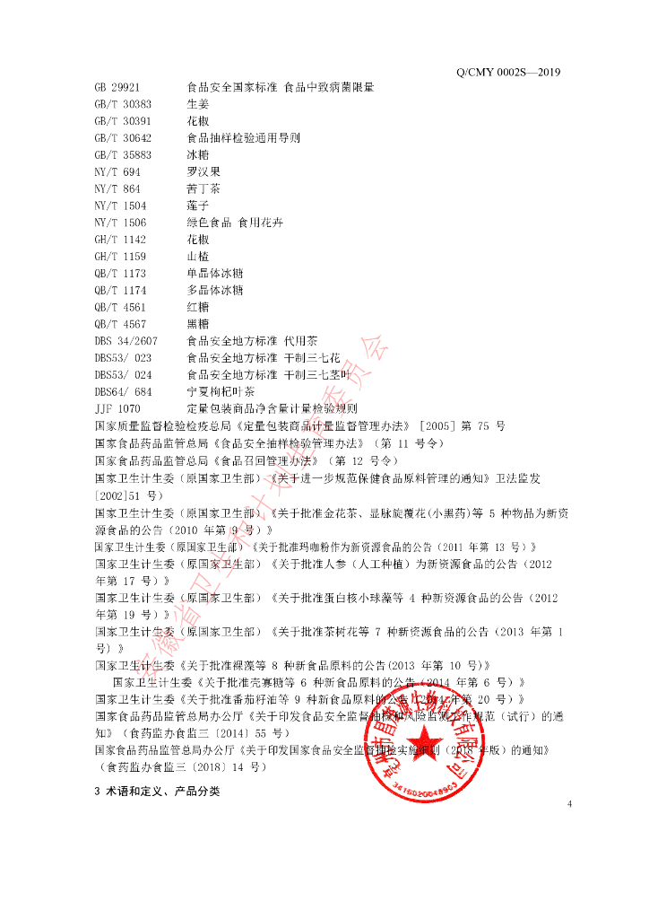 Q/CMY 0002S-2019 代用茶