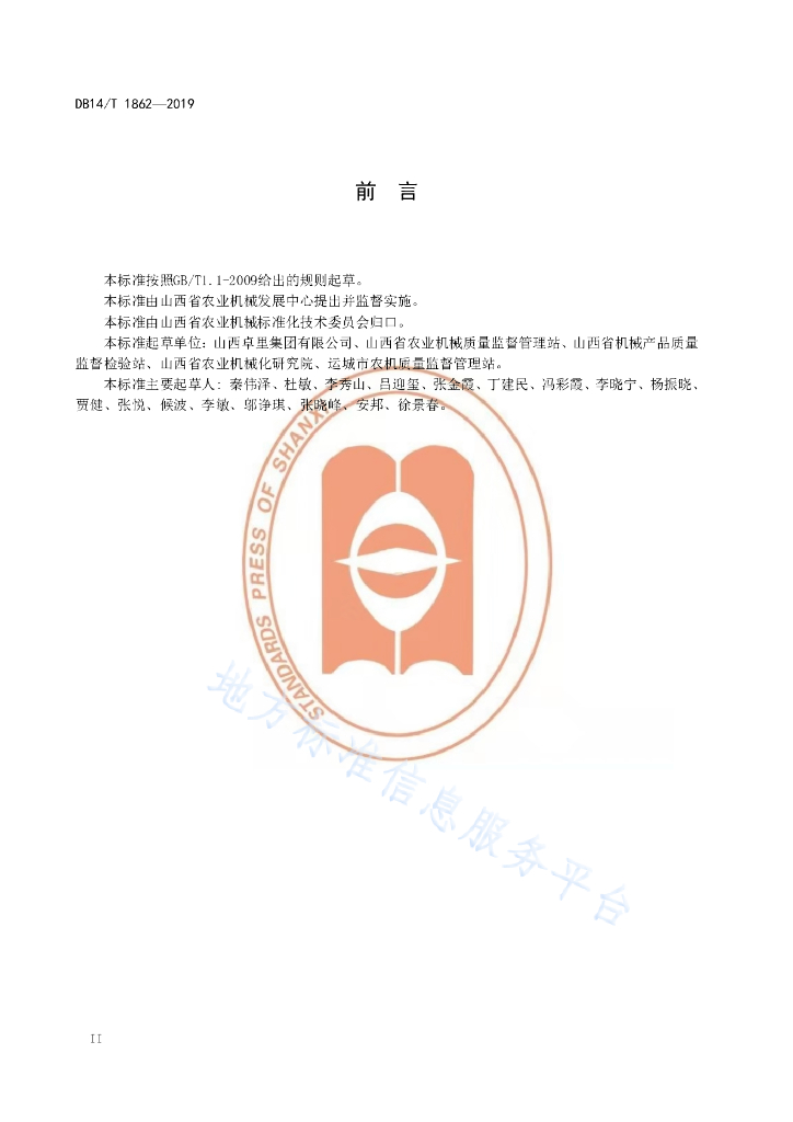 山西卓里集团有限公司、山西省农业机械质量监督管理站、山西省机械产品质量监督检验站、山西省农业机械化研究院、运城市农机质量监督管理站