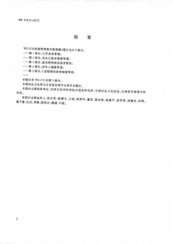 WS 372.2-2012 疾病管理基本数据集 第2部分:高血压患者健康管理