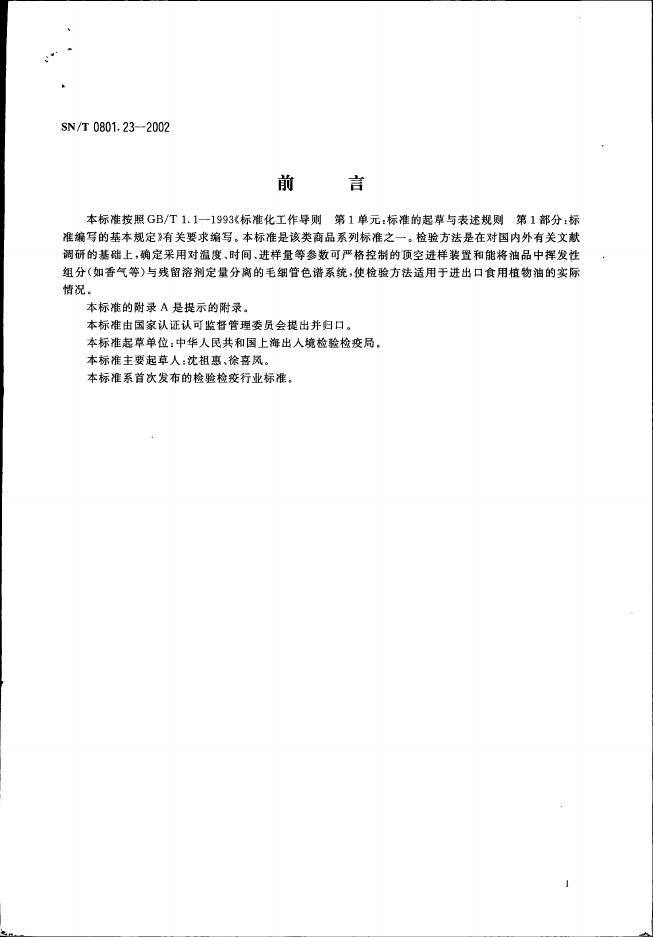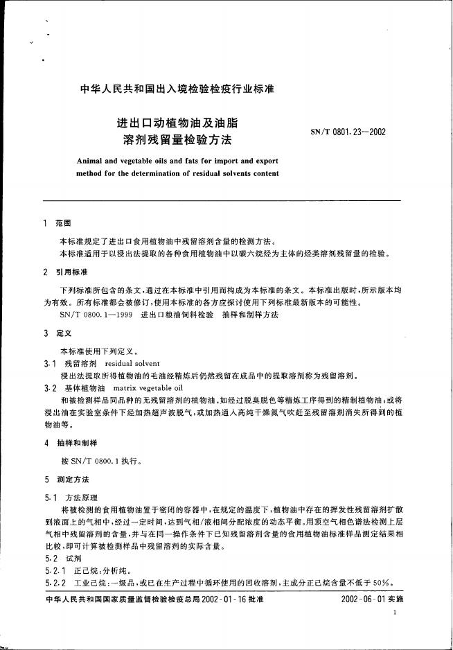 SN/T 0801.23-2002 进出口动植物油及油脂溶剂残留量检验方法