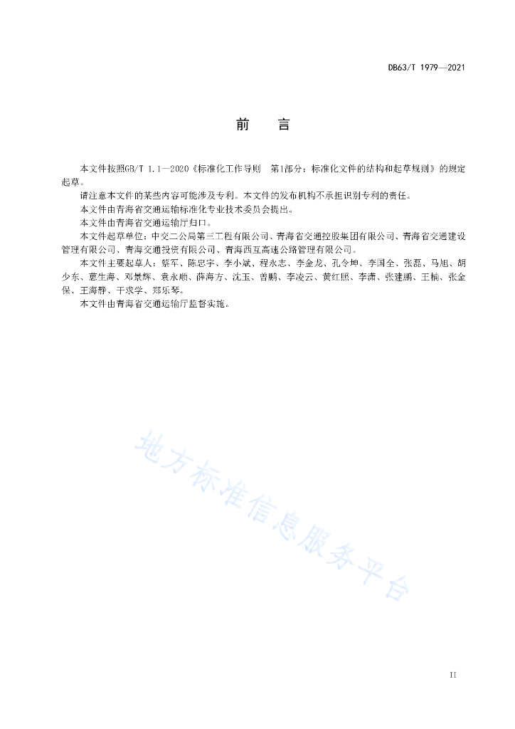 - 提出单位:青海省交通运输标准化专业技术委员会