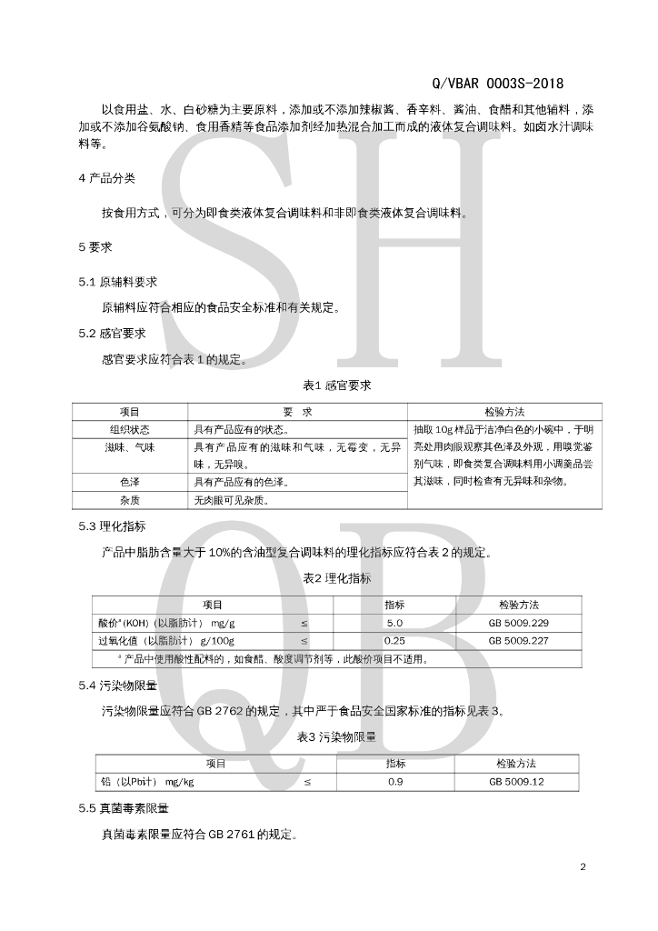 Q/VBAR 0003S-2018 液体复合调味料