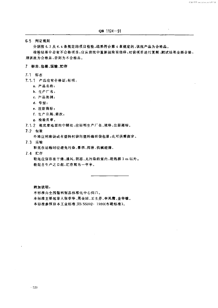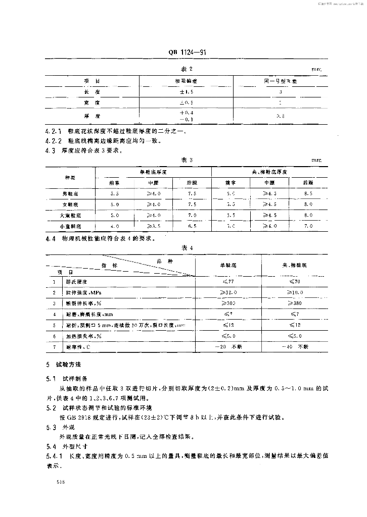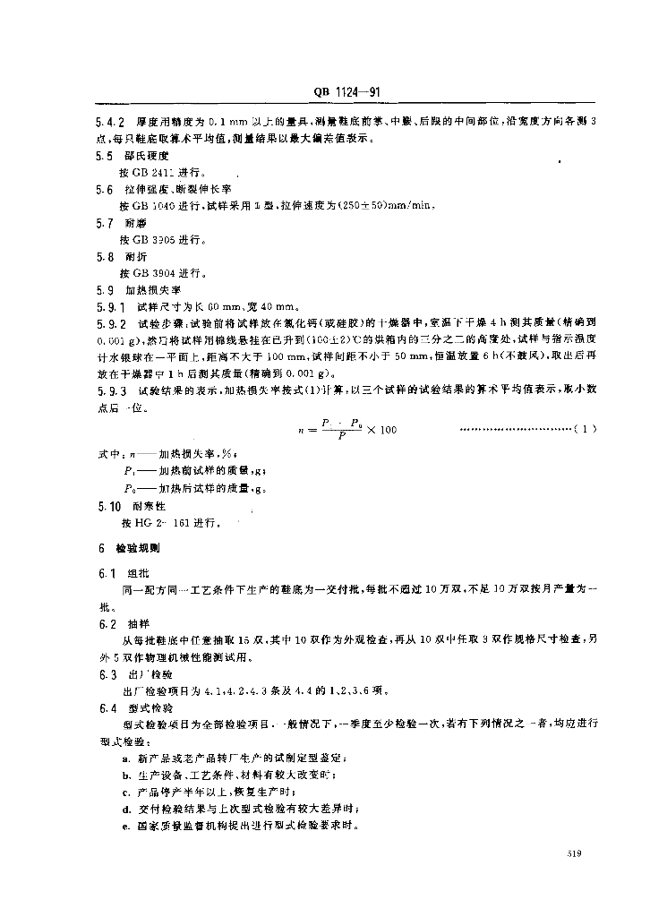 QB 1124-1991 聚氯乙烯塑料鞋底
