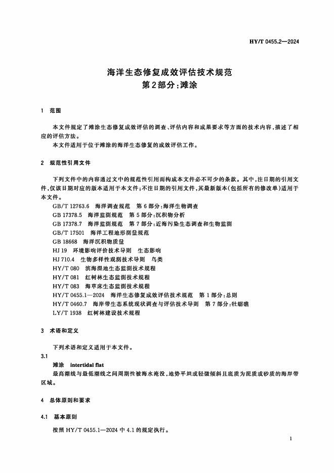 HY/T 0455.2-2024 海洋生态修复成效评估技术规范 第2部分:滩涂