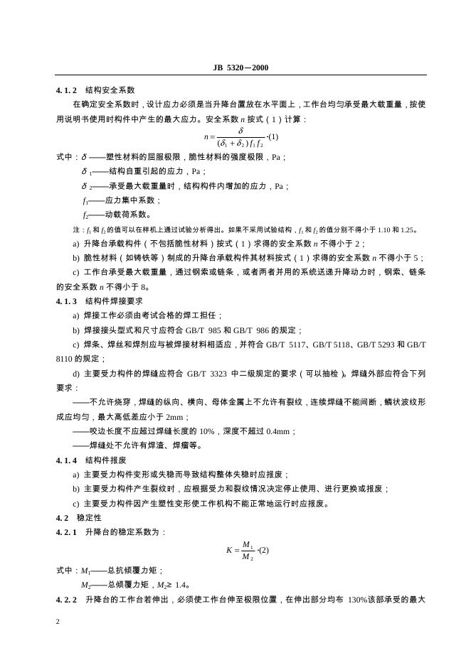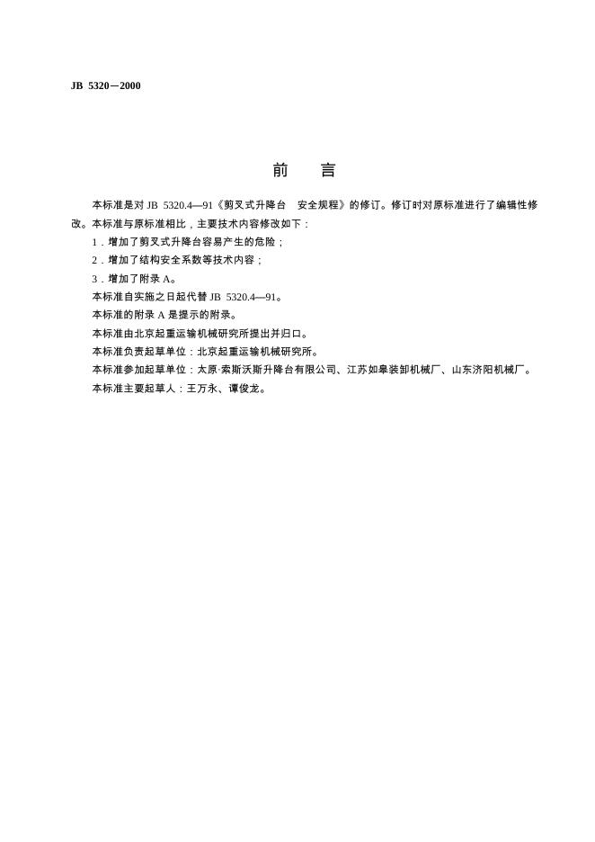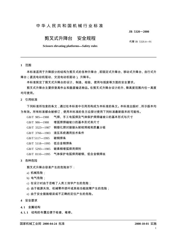JB 5320.4-1991 剪叉式升降台 安全规范