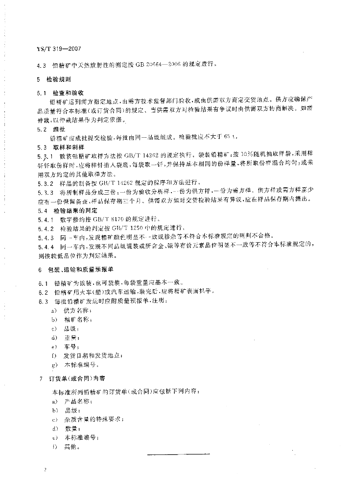 YS/T 319-2007 铅精矿