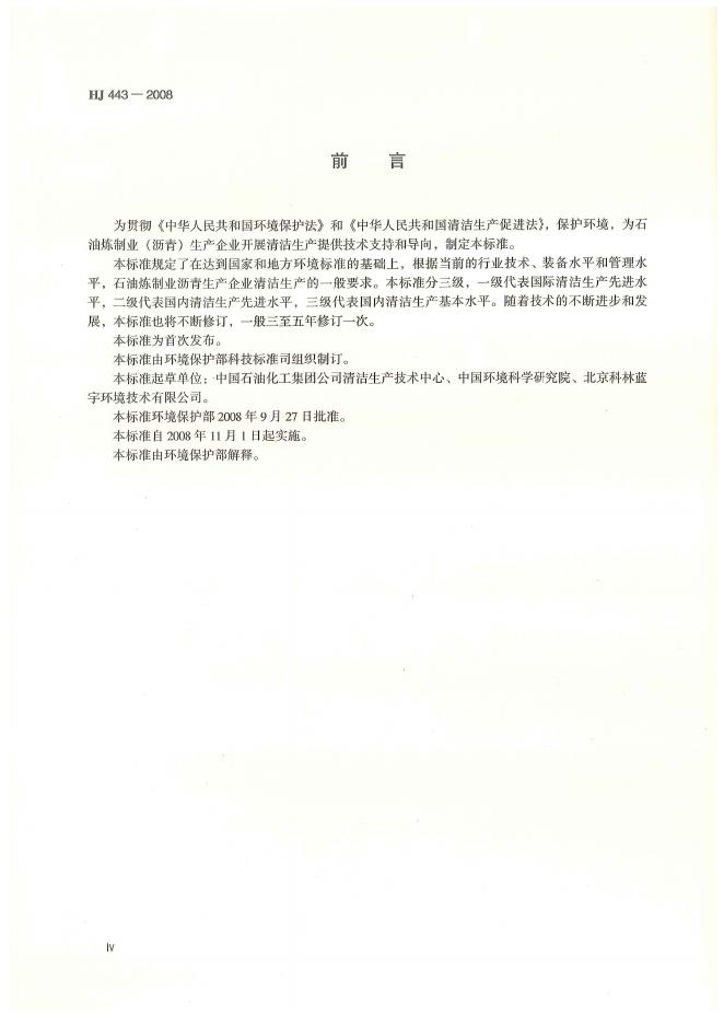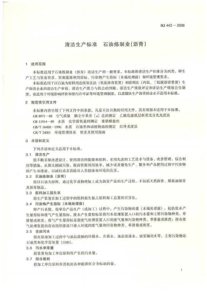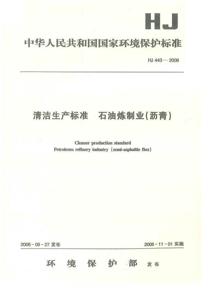 HJ 443-2008 清洁生产标准 石油炼制业(沥青)