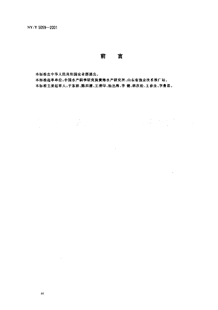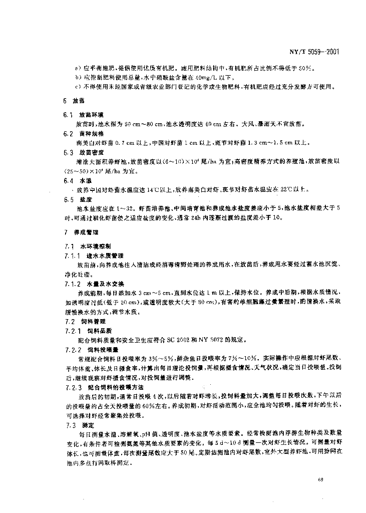 NY/T 5059-2001 无公害食品 对虾养殖技术规范