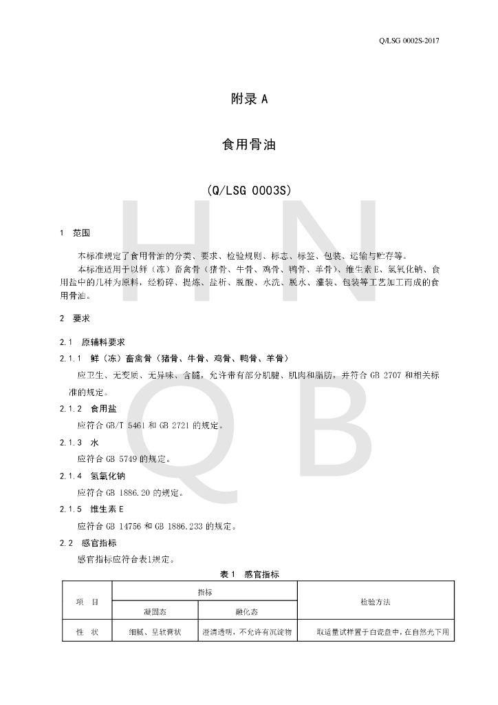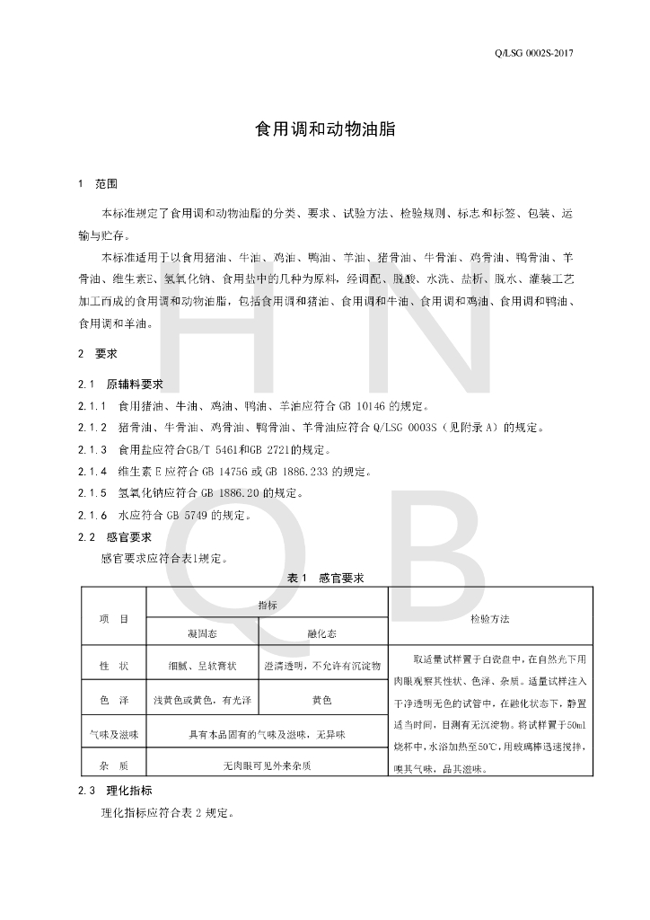 Q/LSG 0002S-2017 食用调和动物油脂