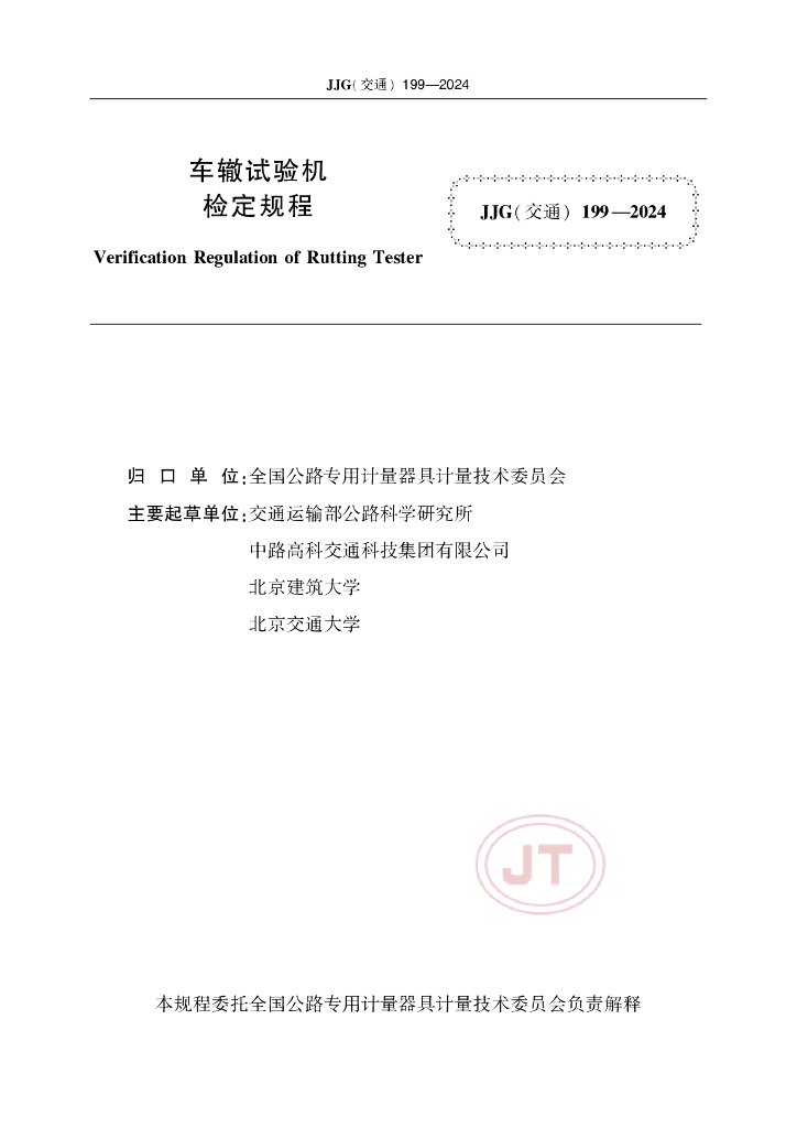 JJG(交通)199-2024 车辙试验机