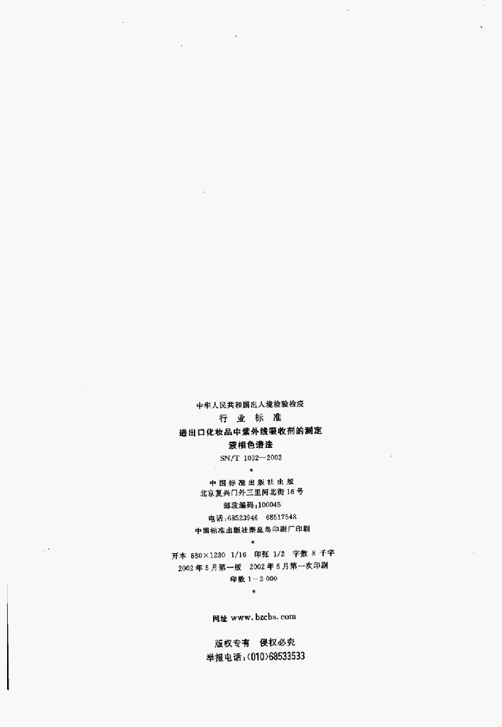 SN/T 1032-2002 进出口化妆品中紫外线吸收剂的测定 液相色谱法