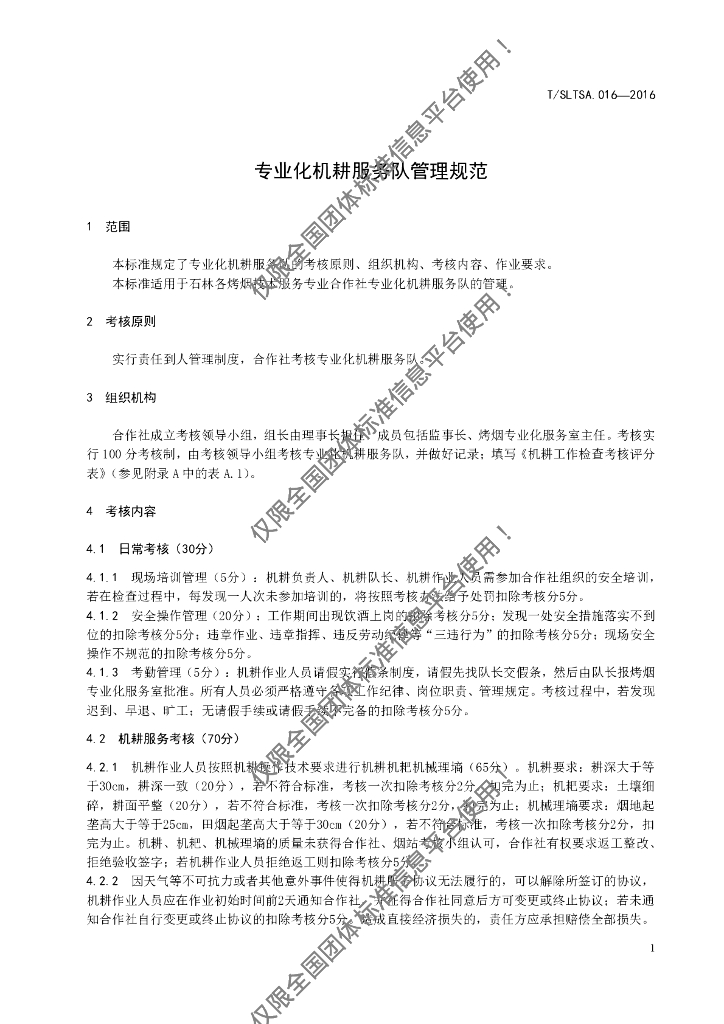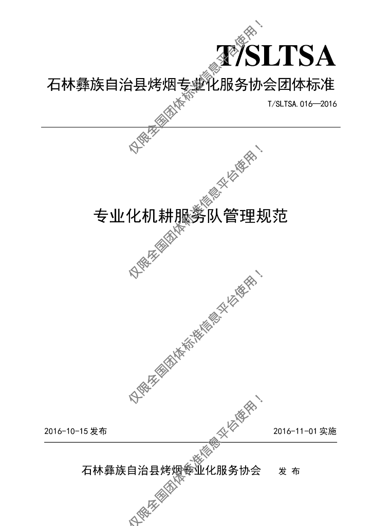 T/SLTSA 016-2016 专业化机耕服务队管理规范