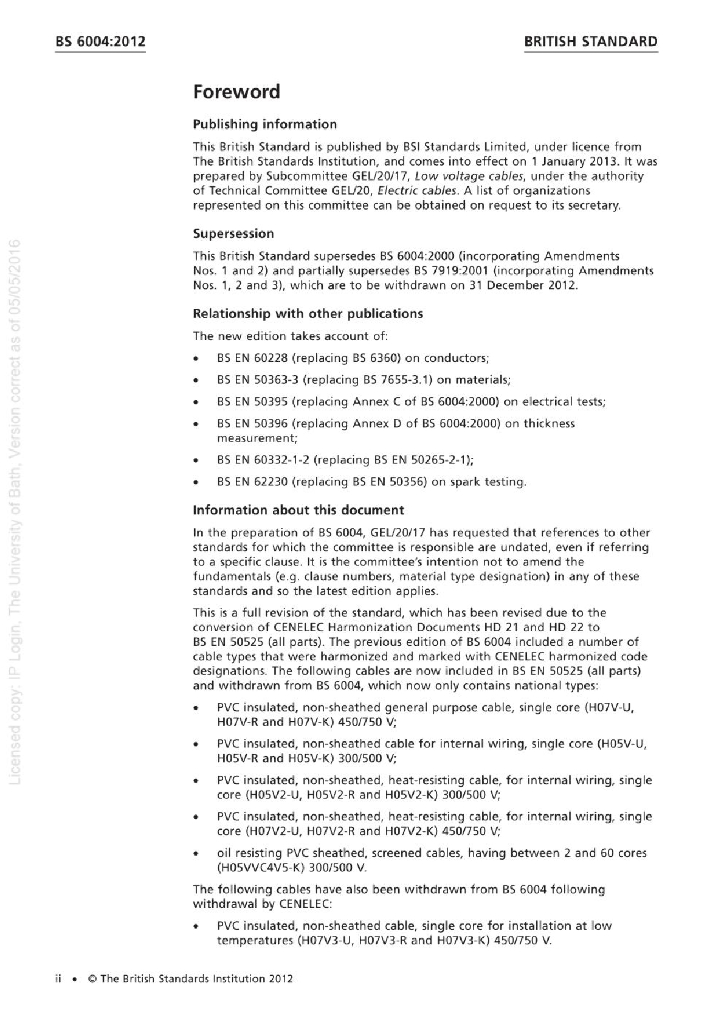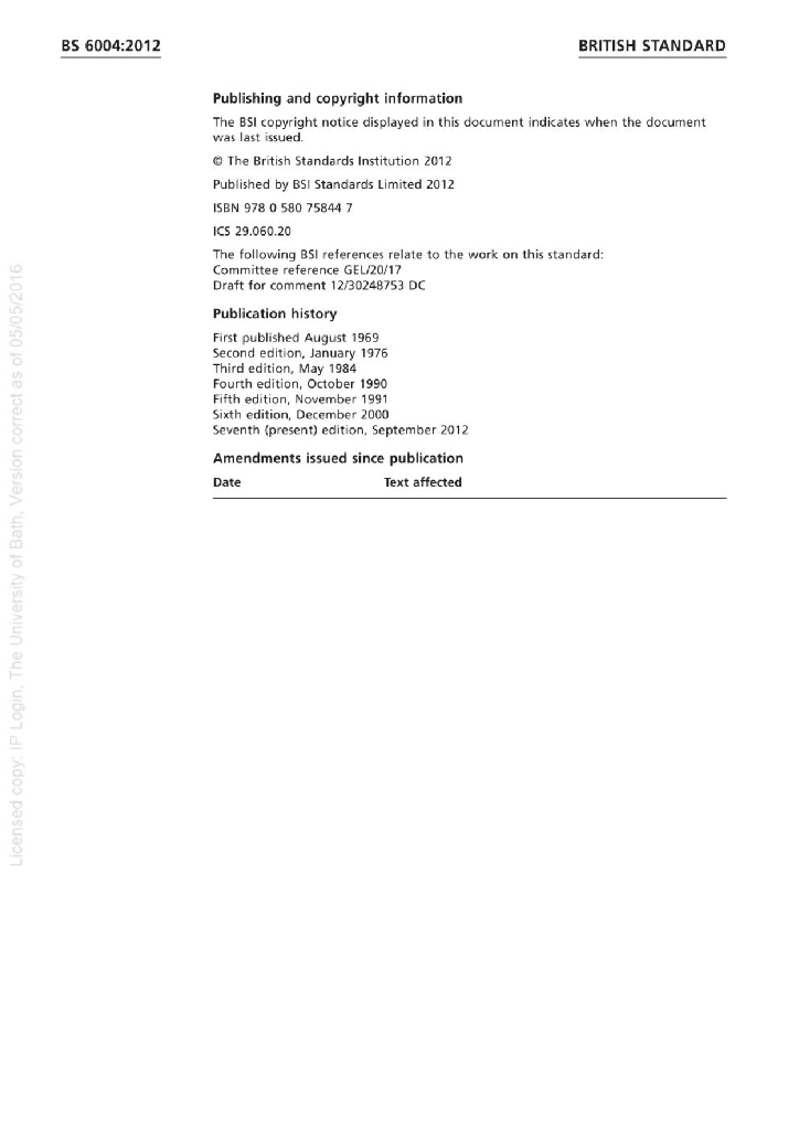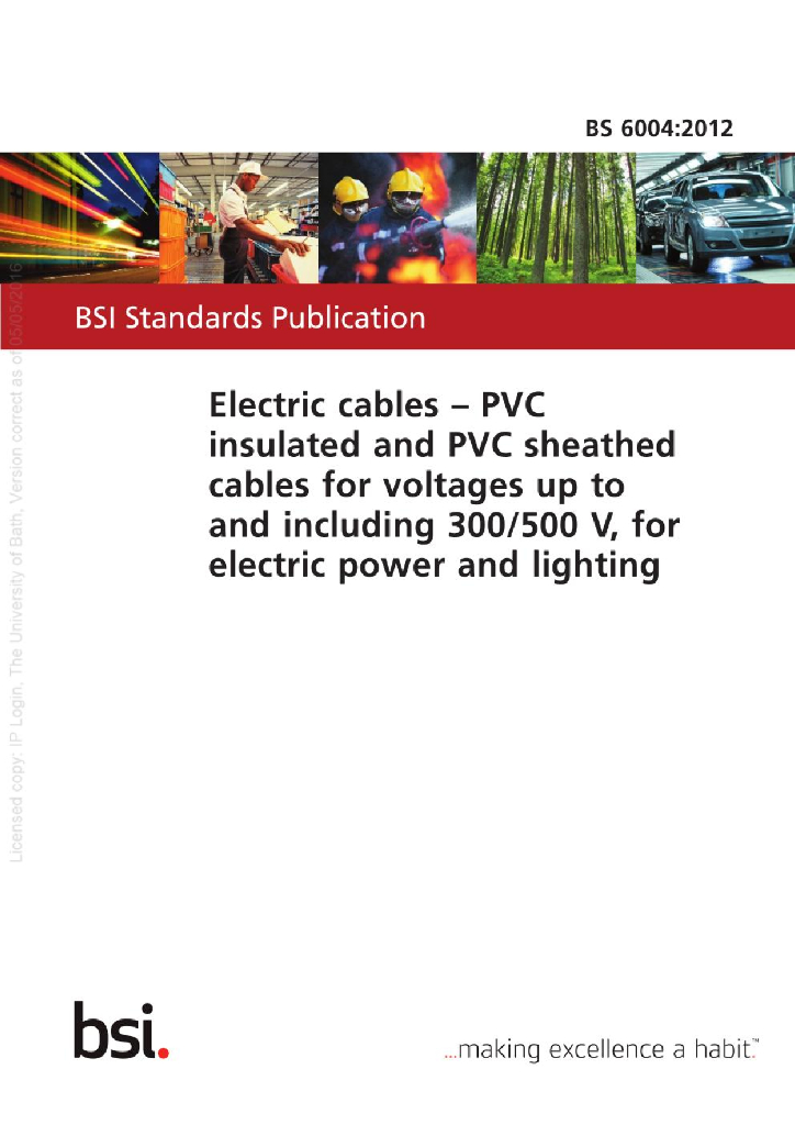 BS 6004:2012 电缆电力、照明和内部布线用电压不超过300-500V的聚氯乙烯(PVC)绝缘非铠装电缆