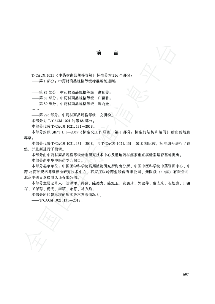 中国医学科学院药用植物研究所海南分所、中国中医科学院中药资源中心、中 药材商品规格等级标准研究技术中心、石家庄以岭药业股份有限公司、无限极(中国) 有限公司、 北京中研百草检测认证有限公司。