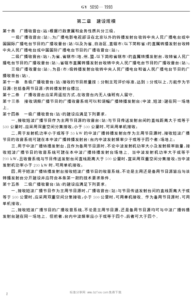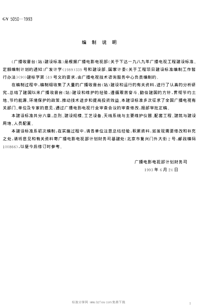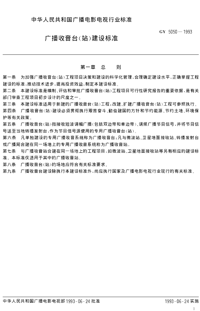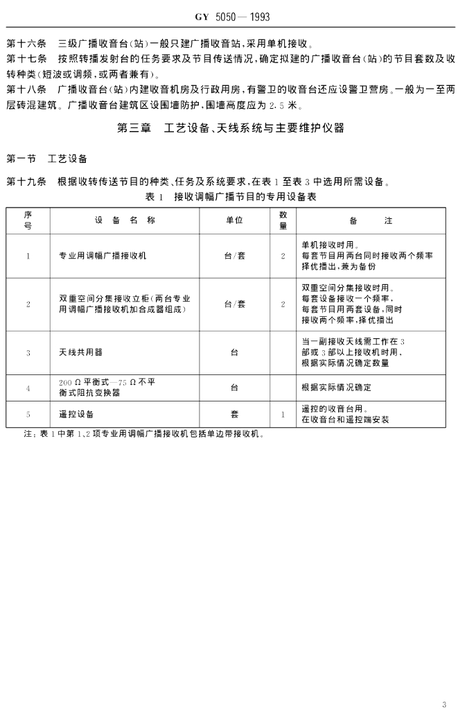 GY 5050-1993 广播收音台(站)建设标准