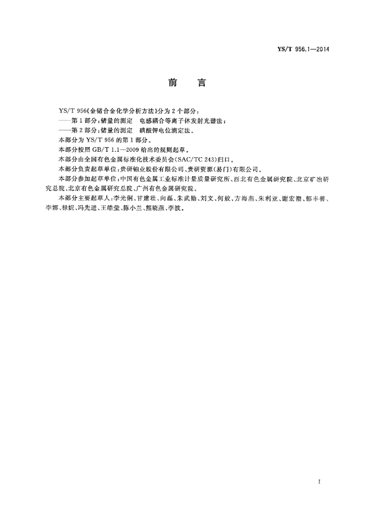 YS/T 956.1-2014 金锗合金化学分析方法 第1部分:锗量的测定电感耦合等离子体发射光谱法