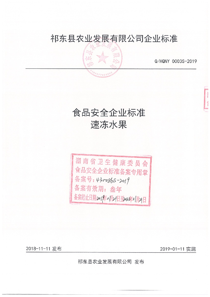 Q/HQNY 0003S-2019 速冻水果