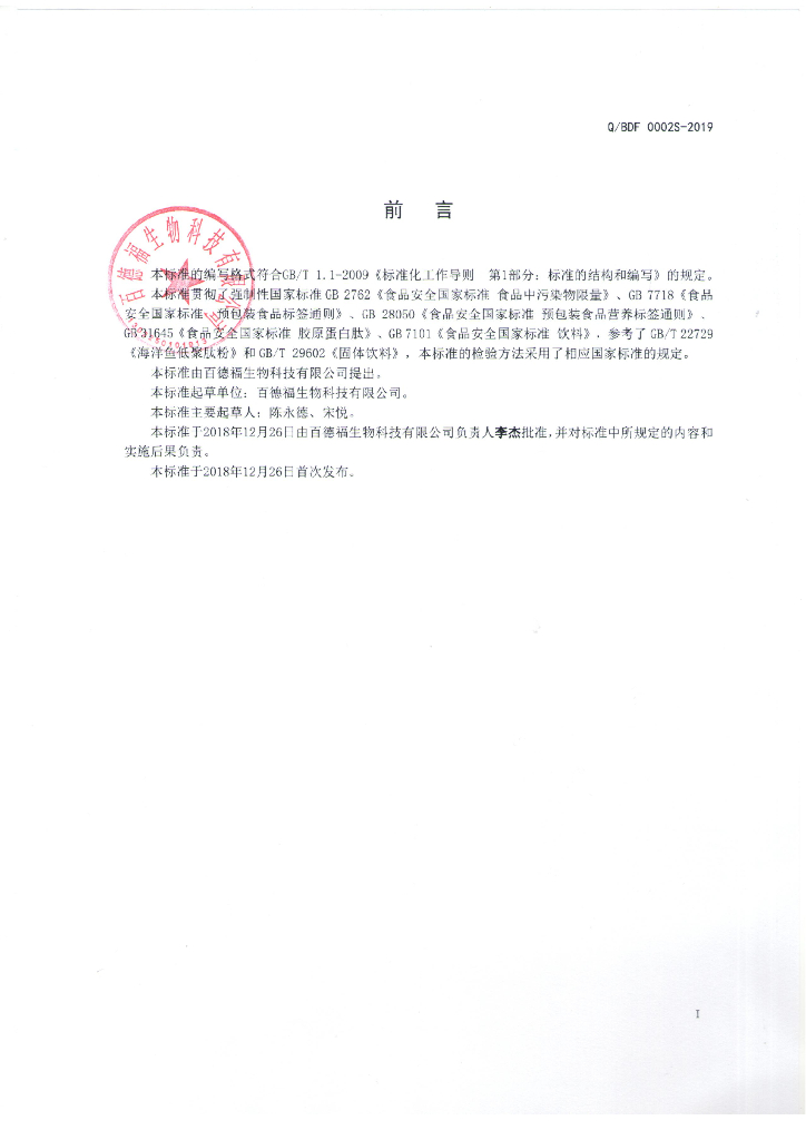 Q/BDF 0002S-2019 鳄鱼胶原蛋白肽粉