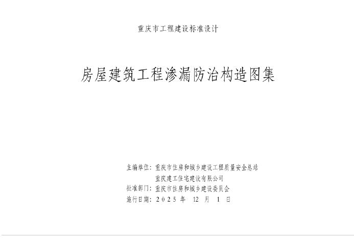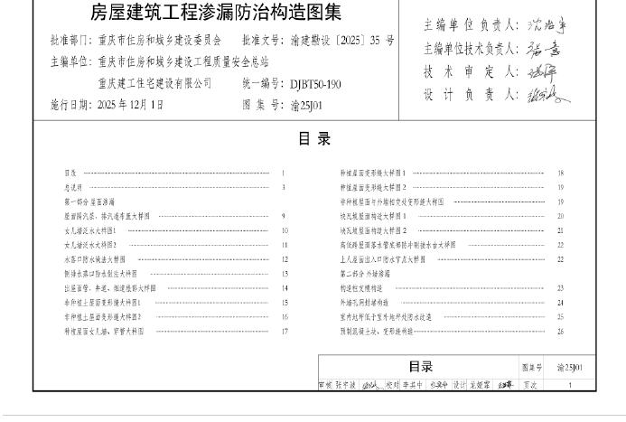 渝25J01 房屋建筑工程渗漏防治构造图集(DJBT50-190)