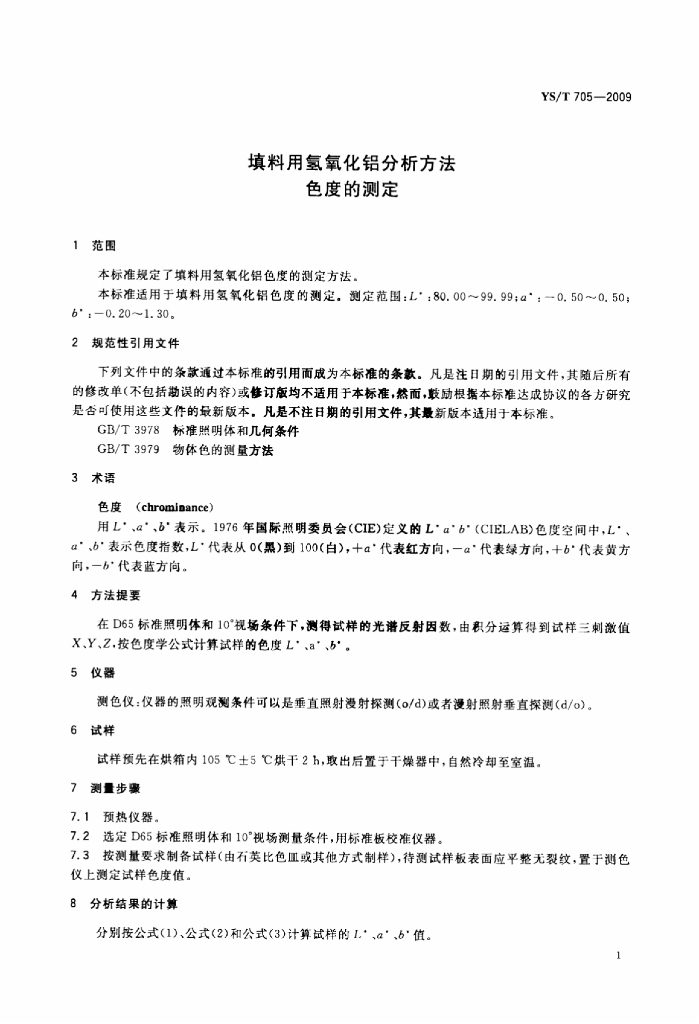 YS/T 705-2009 填料用氢氧化铝分析方法 色度的测定
