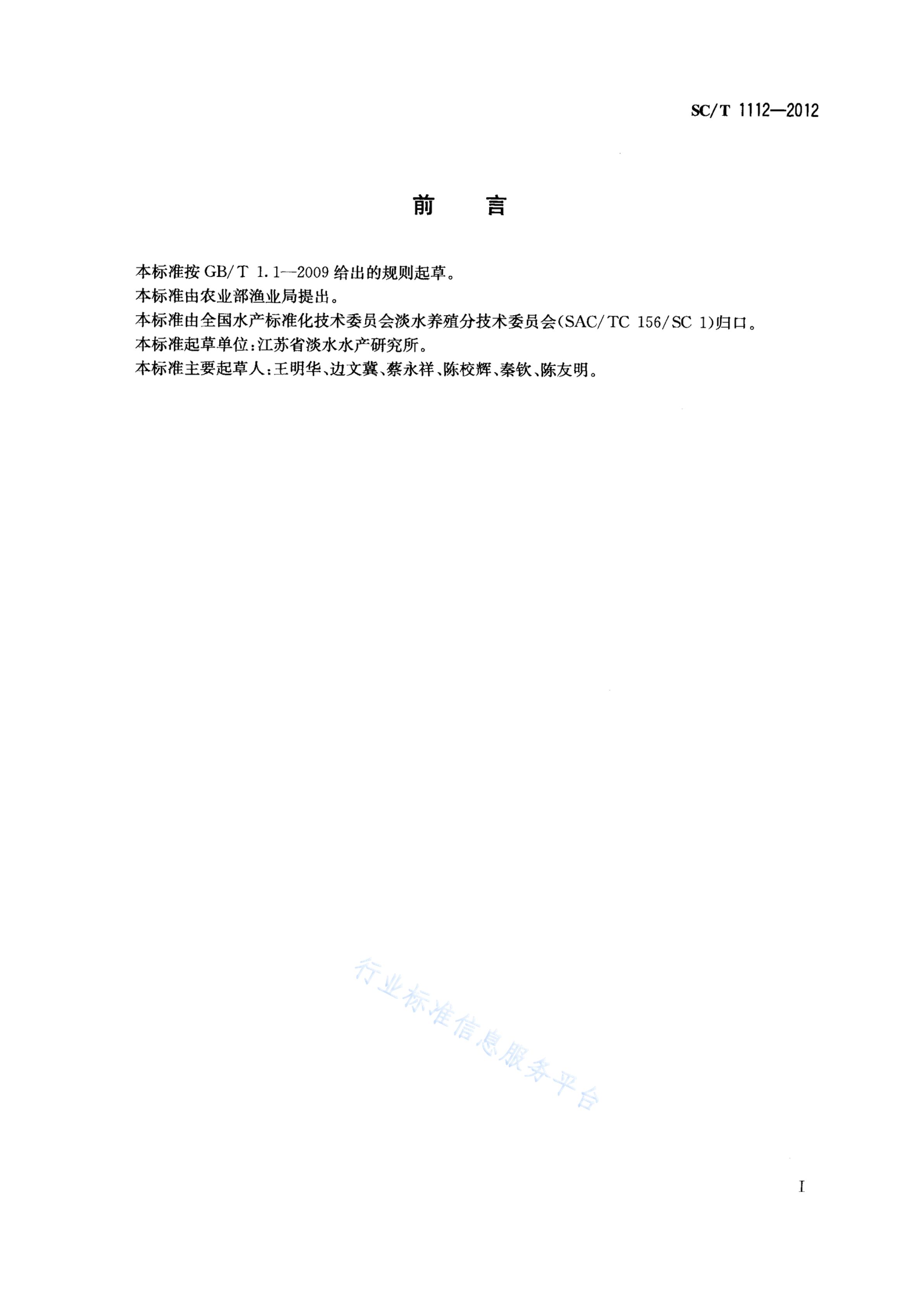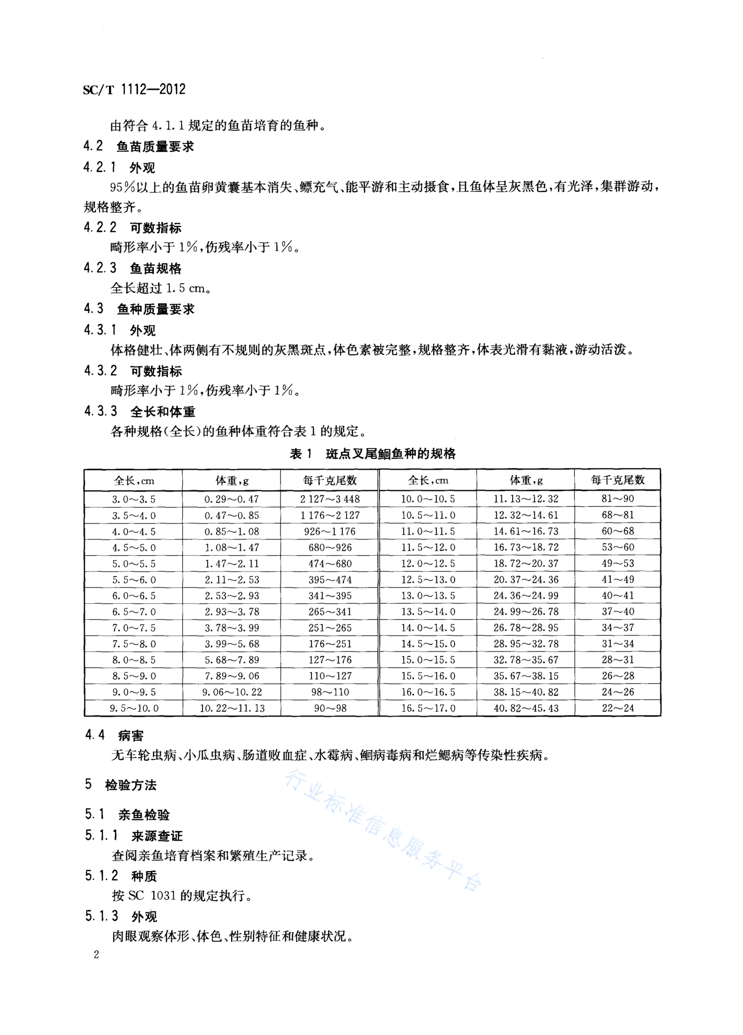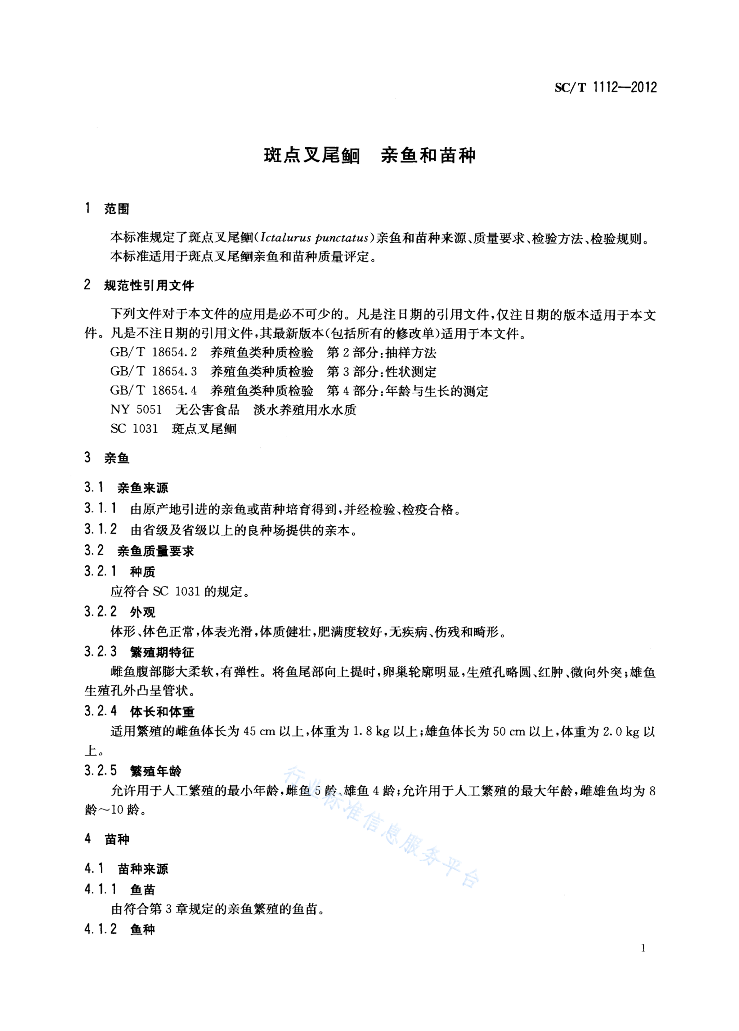 SC/T 1112-2012 斑点叉尾鮰 亲鱼和苗种