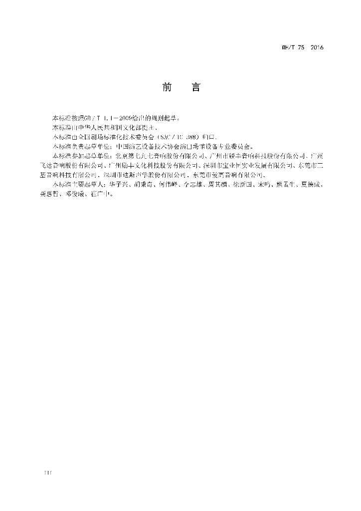 WH/T 75-2016 演出场所扩声用扬声器系统通用规范