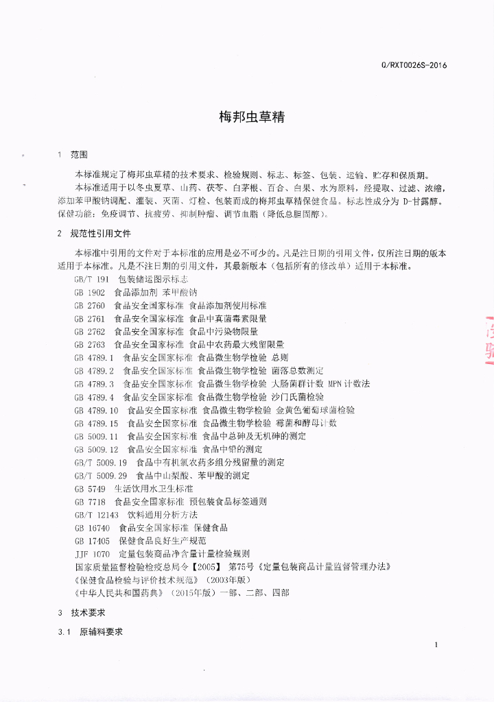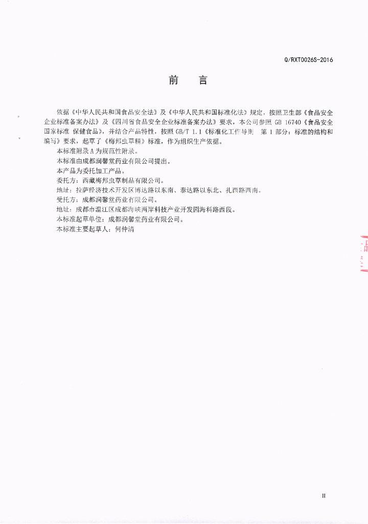 Q/RXT 0026S-2016 成都润馨堂药业有限公司 梅邦虫草精