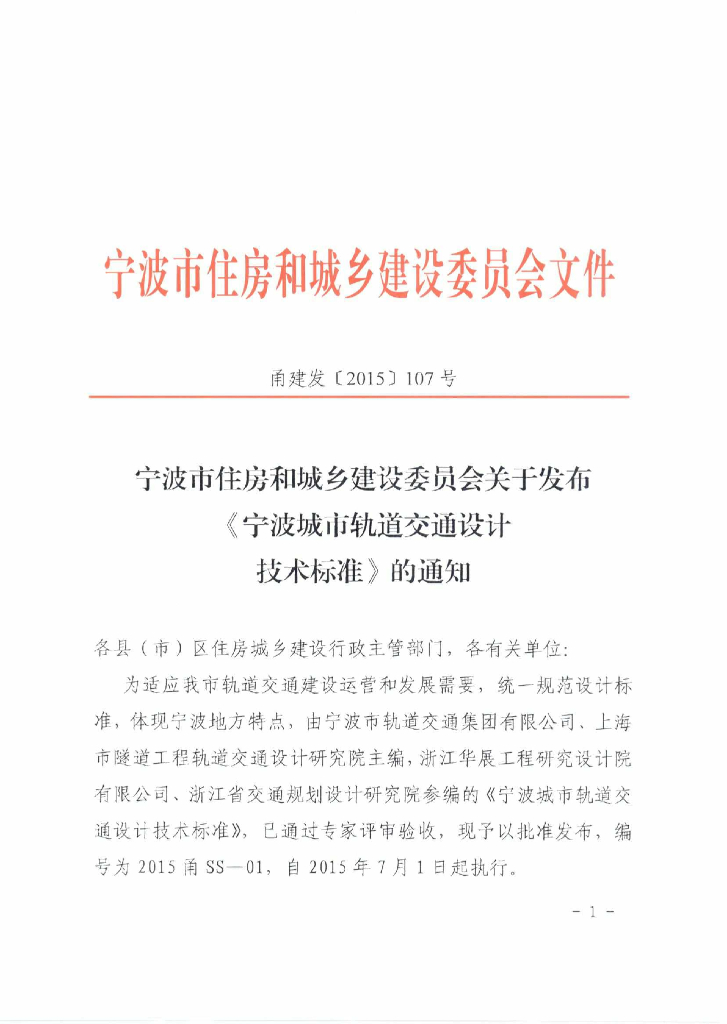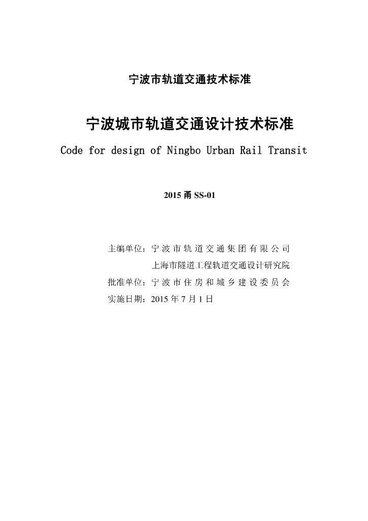 2015甬SS-01 宁波城市轨道交通设计技术标准