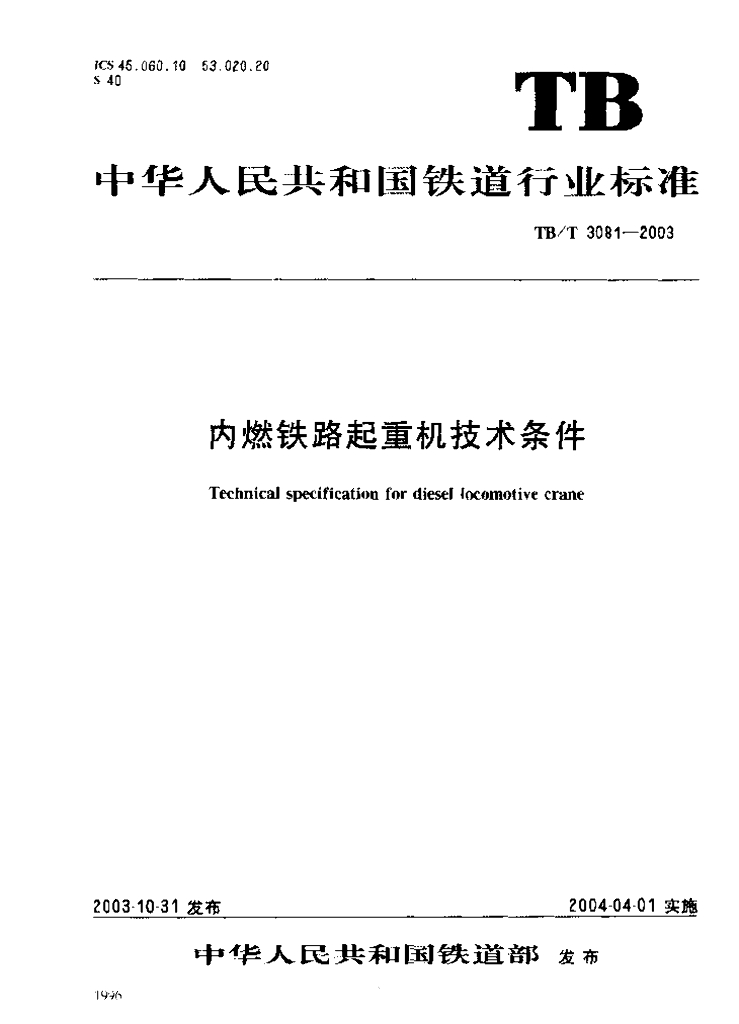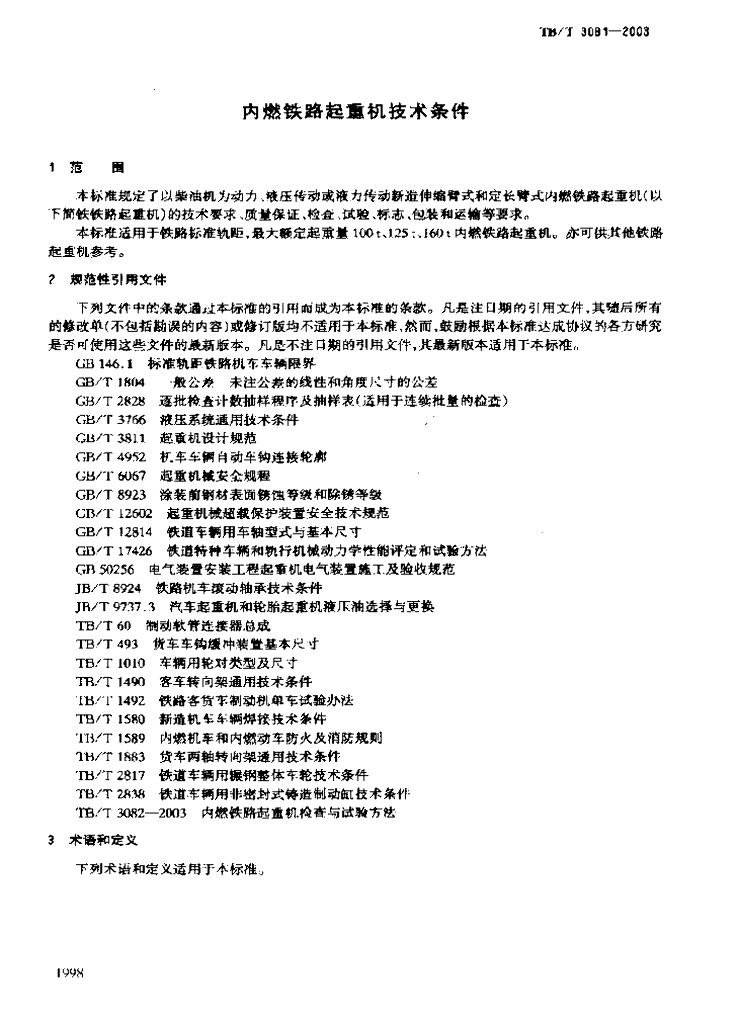 TB/T 3081-2003 内燃铁路起重机技术条件